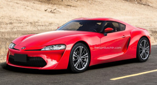 外观方面,全新一代Supra在外观上将会借鉴丰田FT-1概念车的设计,效果图中,前进气格栅的造型则回归于传统,不像概念车那么夸张,新车大灯两侧的进气口造型与FT-1采用了完全相同的设计。在侧面,新车A柱采用了黑色涂装,十分个性。另外,新车后翼子板前方也设计有通风口。