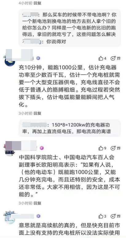 然而,该技术却遭到专家的质疑。1月16日,中国科学院院士欧阳明高在2021中国电动汽车百人会论坛上表示,“如果某一位说他的车既能跑1000公里,又能几分钟充完电,还特别安全,而且成本还非常低,大家不用相信,这在目前不可能同时达到。”