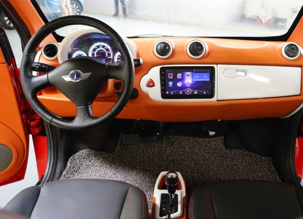在内饰部分,欧联M1同样采用了双色装饰,整体设计十分简洁,车内采用三辐式多功能方向盘,仪表盘以及空调出风口的设计都十分可爱。在中控台上,新车还配备有一块液晶显示屏。