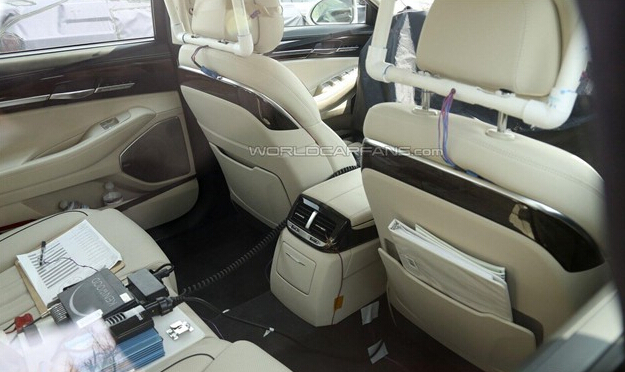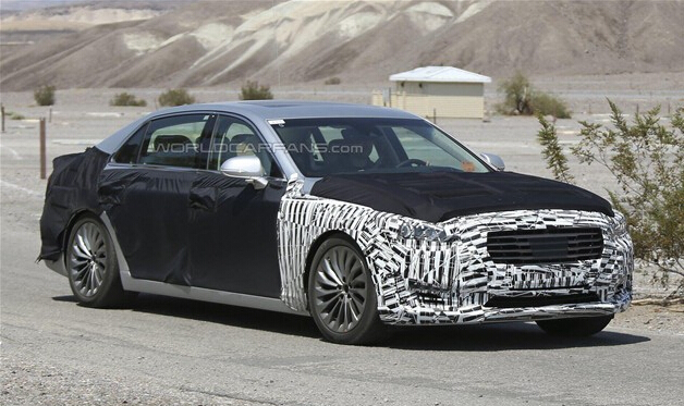 前排车厢包裹的比较严重,但是还是能从中看出这款车型拥有一个双色调真皮包裹的方向盘和信息娱乐系统,功能比较齐全。中控台可能采用了全新的设计,并且配备了换挡拨片功能。据悉,2017款现代雅科仕可能配备功率为313Kw(420Ps),扭矩为518Nm的5.0升V8发动机。并且采用八速自动变速器和全轮驱动系统。