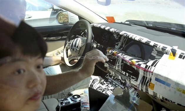 现代雅科仕车型代表着现代汽车的设计、制造的最高水准。Equus(雅科仕)风格上与中国人熟悉的现代XG车型非常相象,采用方正保守又见古典的造型风格,表现出其高雅豪华的气派,这也是现代为了与全球高级房车产品竞争而生产的一款车。近日,海外媒体曝光了一组正在美国测试的2017款现代雅科仕的谍照图片,其中外观部分遮挡比较严实,但是内饰图片有几张比较清楚。
